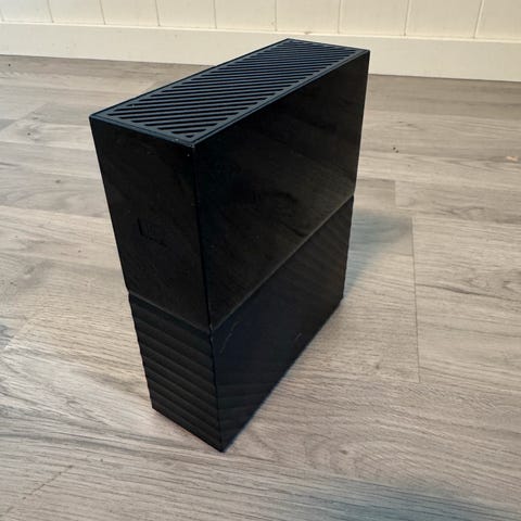 Western Digital My Book ekstern harddisk med USB SS inkludert strømadapter + USB Ledning selges. Enheten har et vertikalt design med ventilasjon for kjøling, og mulighet for oppgradering av 6TB HDD Disken til høyre kapasitet.