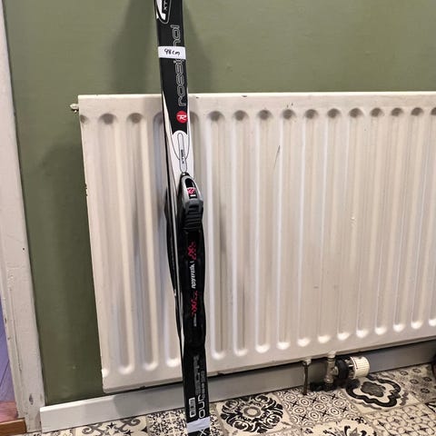 Smørefrie langrennsski med bindinger til barn. Skiene har en lengde på 90.