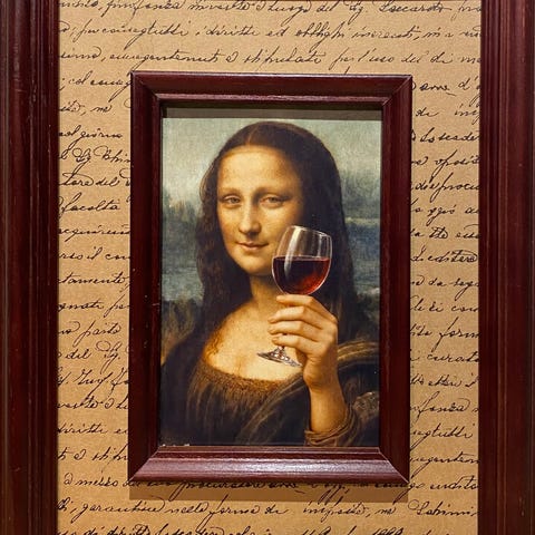 Mona Lise rekker tunge i dette AI-kreerte kunsttrykket.