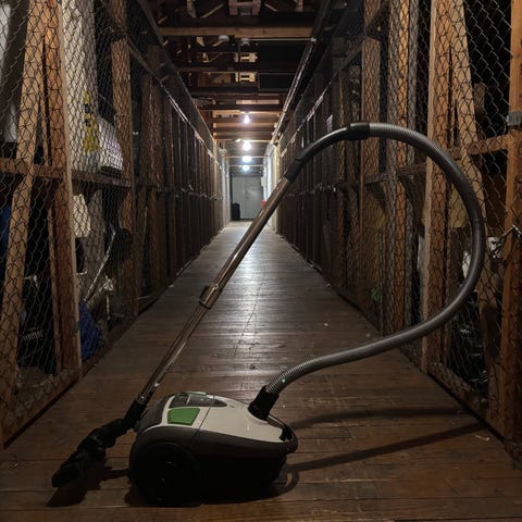 støvsuger med tilbehør inkludert slange, munnstykke og forlengelsesrør. Produktet er svart og designet for vanlig rengjøring i hjemmet.