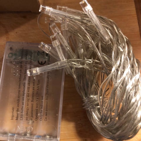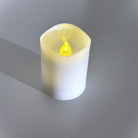 Fungerer fint. Trenger batteri for å lyse. «Flammen» beveger seg. Det ene lyset har en liten fallskade, se bilde