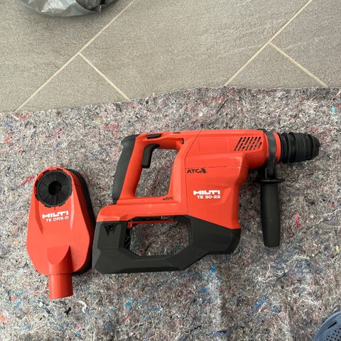 Hilti SF 10W-A22 batteridrevet drill med batteri. Verktøyet har et kompakt design og er egnet for ulike bore- og skruoppgaver. Produktet er rødt og svart i farge.fungerer som den skal pris ferdig diskutert.