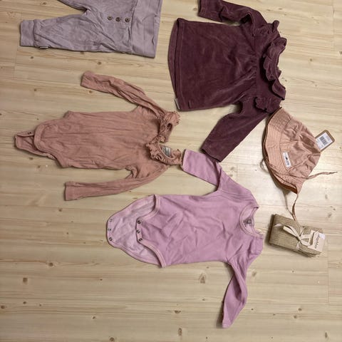 Fint og lite brukt. Noen få flekker på enkelte plagg, men som lett går vekk i vask.