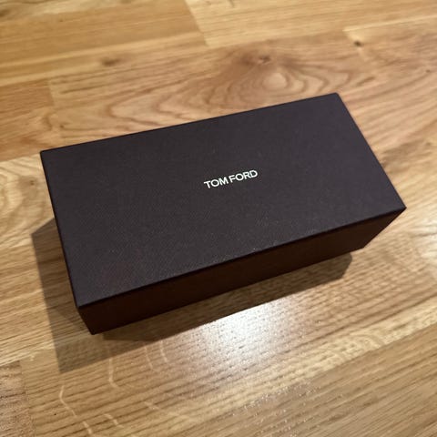 Tom Ford solbriller for unisex. Brillene har en rund form med mørke glass og svart innfatning. Leveres med etuiet som vises på bildene.
