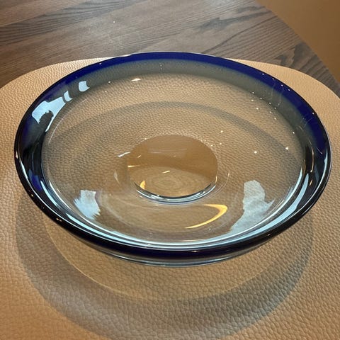 Hvit kunstglass skål med virvelmønster. Høyde 5,5 cm. Diameter 12 cm. Hel og pen. Hbo kr 135. 🤍