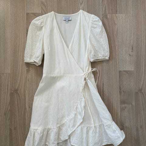 Wrap kjole i 100% lin fra & Other stories, størrelse 34. Den har gulnet litt i fargen, selges derfor billig.