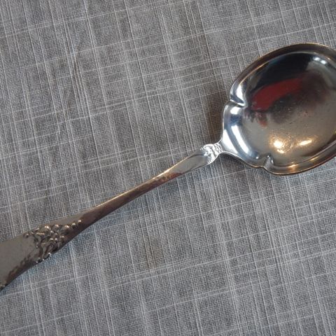 Sølvplett,men ustemplet. Samme mønster som den store suppeøsen jeg har i en annen annonse.Se beskrivelse der.