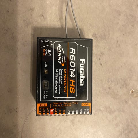Futaba 7C radiostyring fjernkontroll med digital skjerm og flere kontrollfunksjoner. Enheten har to joysticks for styring og flere brytere for ulike funksjoner. Passer til bruk med radiostyrte modeller som fly, biler eller båter.