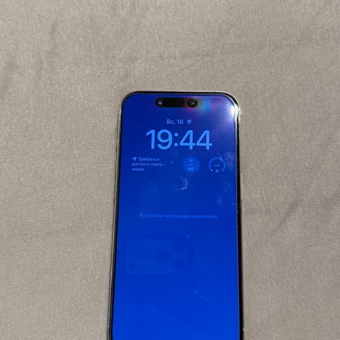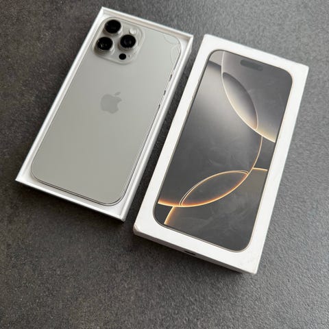 Apple iPhone 15 Pro mobiltelefon med 256GB lagringskapasitet i sølvfarge. Telefonen har en skjerm med høy oppløsning, trippel kamera på baksiden, og er utstyrt med iOS operativsystem. Batterikapasiteten er på 96 %, og telefonen er produsert i 2022.