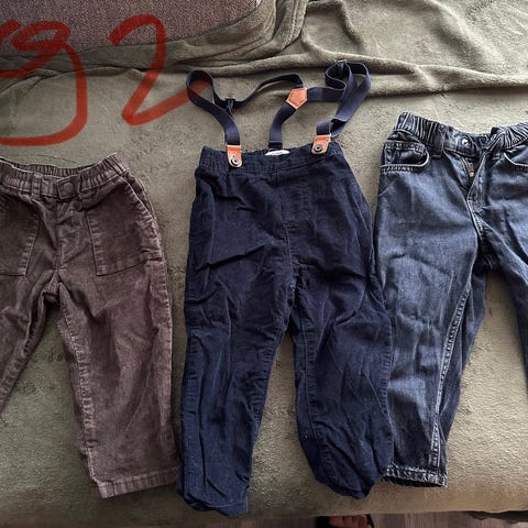 H&M og ZARA bukse i bomull, størrelse 92, beregnet for gutt. Buksen er laget av bomullsmateriale og passer barn i denne størrelsen.