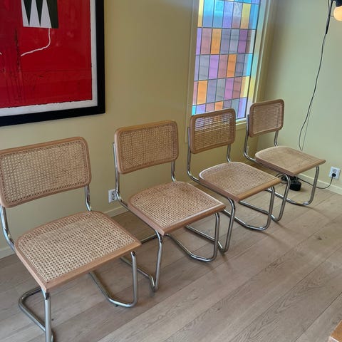 De er restaurert, stabile og i god stand. Behagelige å sitte i.