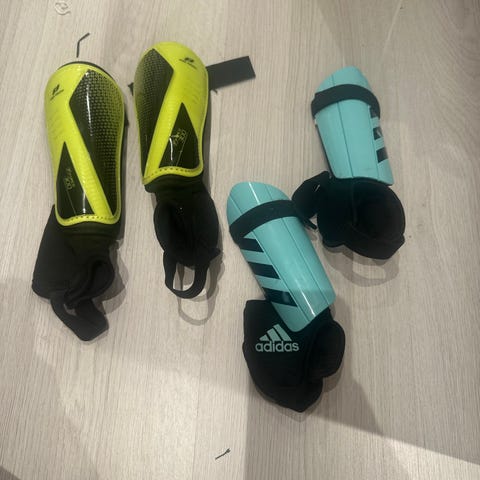 Select fotballstrømper i hvit farge, designet for sportsbruk. Nike fotballstrømper i blå farge, også tilpasset fotballaktiviteter. Begge parene har forsterkede partier for bedre passform og komfort under aktivitet.