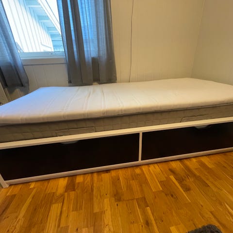 2 80x200 madrasser kan følge med. Anbefaler uansett en tykkere madrass under eller en overmadrass for komfort.