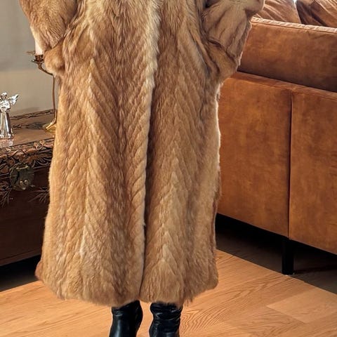 Lang pelskåpe i rødrev, kjøpt brukt og i god stand. Passer størrelse M.