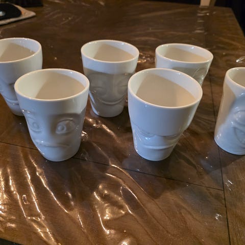 4 stk tassen skål 500 ml. De er pent brukte ingen bruksmerker. 2 stk 200 ml skål. Selges helst samlet, men åpen for å selge separate. Pris per 500 ml 300