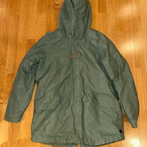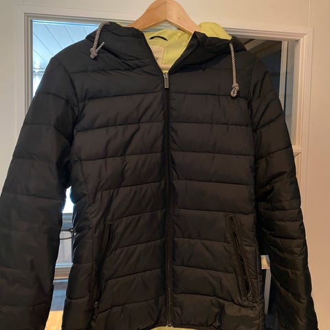 Jakken har praktiske lommer og hette, egnet for vinterbruk. Designet for kvinner. Veldig fornøyd med denne jakken, men passer meg ikke lenger etter to barn.