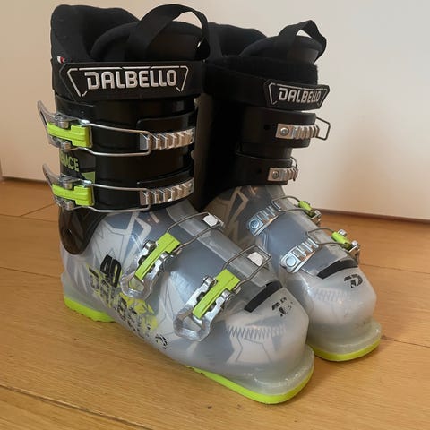 Dalbello ski-støvler i størrelse 36,5 (EU) med innvendig mål på 279 mm. Støvlene har justerbare spenner og er designet for å gi støtte og komfort under skikjøring.