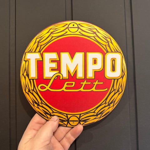 Tempo var en av Norges mest kjente produsenter av motorsykler og mopeder, basert på tyske Sachs-motorer. Emblemet representerer norsk industri- og motorhistorie, produsert i Sandnes av Jonas Øglænd, som også står bak de kjente DBS-syklene.