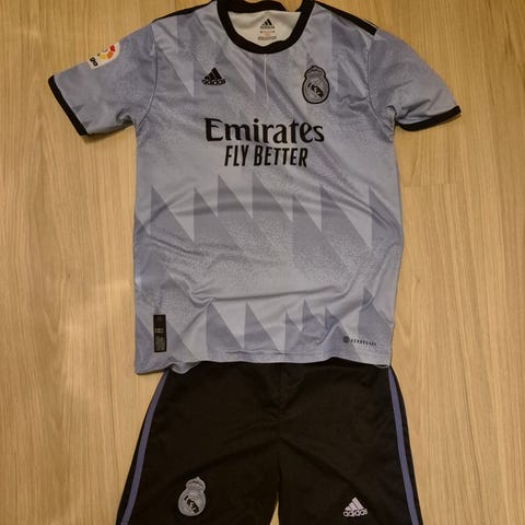 Adidas Benfica fotballdrakt for barn i størrelse 146. Drakten består av rød trøye og hvite shorts med røde detaljer. Egnet for fotballaktivitet.
