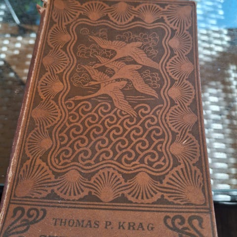 Flott antikk bok, ruver i bokhyllen med sine 34 cm.