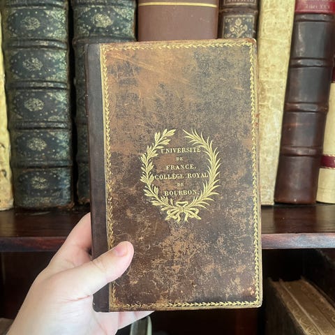 Et stempel fra "Drammens Lærde og Realskole" er synlig på tittelsiden. Noen få rifter og aldersflekker, overordnet fin stand.