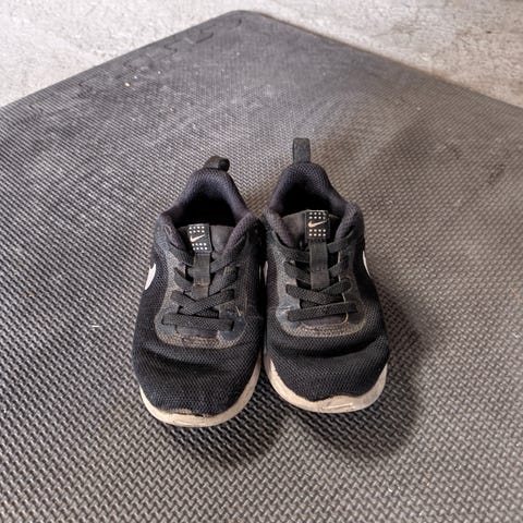 Nike barne sko i størrelse 25, unisex. Skoene er hvite og laget for barn. Materialet og designet er tilpasset for barnets bruk.