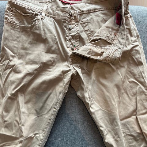 Selger en relativt ny bukse fra Jacob Cöhen som har fått et rift i skrittet. Jeg har ikke brukt buksen etter den revnet og den har bare blitt liggende. Selges derfor billig.