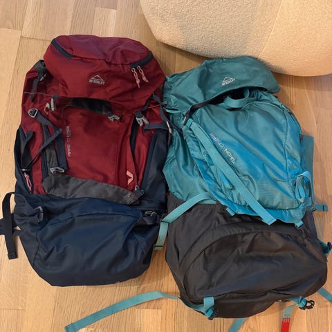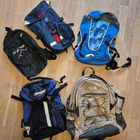 Lite brukt ryggsekk . Beige , svart med gul snor. Ingen skader.
