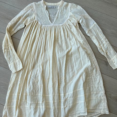 Lekker lang kjole med kryss i ryggen. Aldri brukt da den ble for lang til meg, er 160 cm.