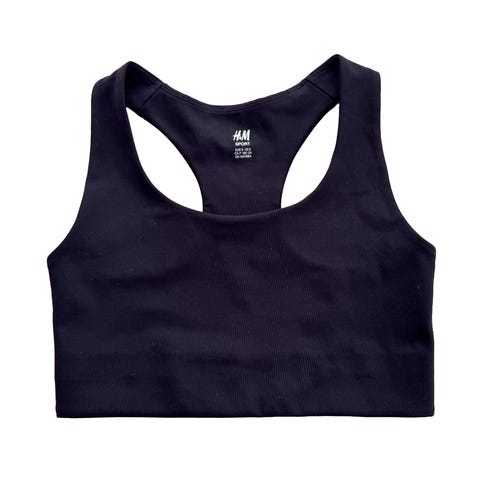 H&M Sport sports-BH i hvit farge, størrelse S. Egnet for ulike sportstyper. Laget for kvinner.