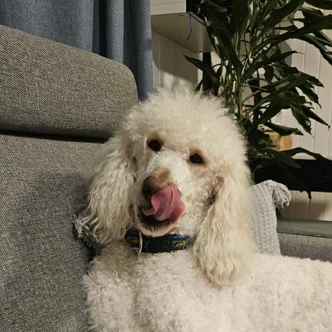 Fin og energisk Golden doodle-tispe søker nytt hjem. Hun er 2.generasjons Golden doodle, og veier 28 kilo, altså en ganske stor jente. Røyter ikke, men krever pelsstell.