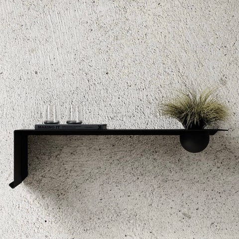 Det er en liten hylle med stor personlighet. Den kan passe fint enten i et kjøkken, stue, soverommet eller på badet. Den har hull for å festes på veggen.
