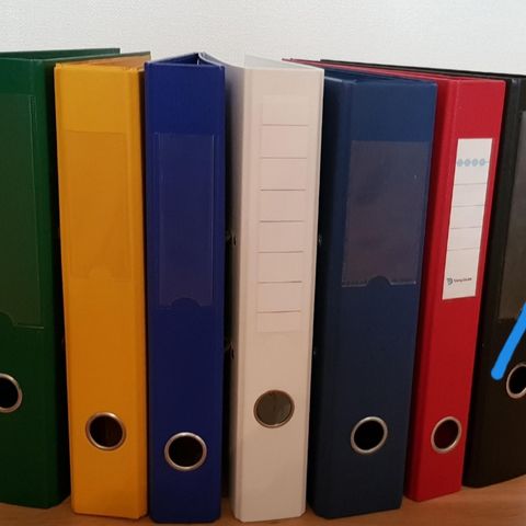5stk grønne ringpermer for A4 ark selges samlet. Ikke brukt. Vendbar etikett på ryggen for merking av innholdet Ryggbredde: 40 mm O-ring mekanisme: 25mm Utvendig størrelse: 32x25,5cm
