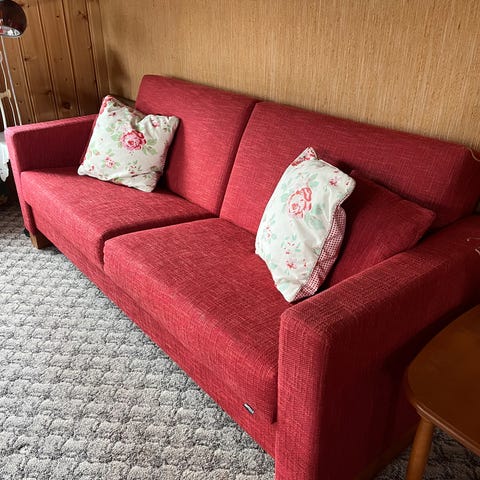 Sofasofa i god stand, men har en knekk i oppbevarings delen, som sees på bildet