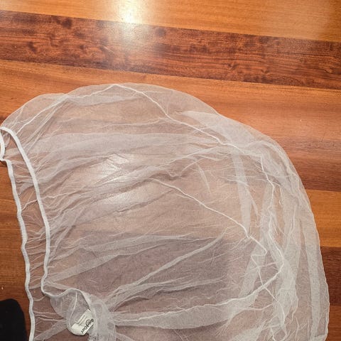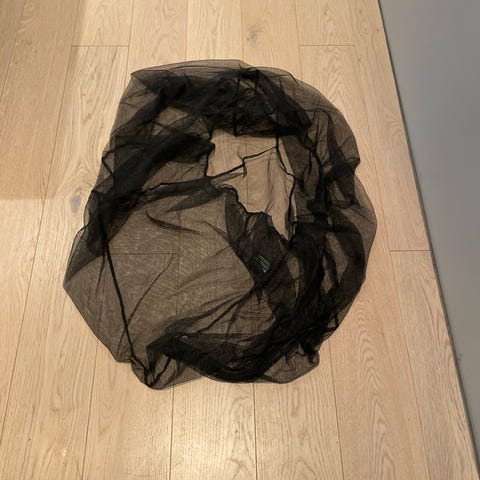 Myggnett til barnevogn. Brukt i barnehagen som ekstra myggnett til barnevogn der.