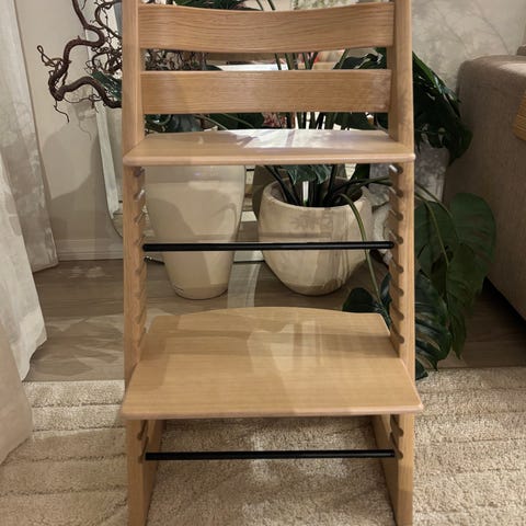 Selger en velholdt stokke tripp trapp stol i den populære desginen EIK NATURAL. Stolen er av ekte eik. Har 2-3 små bruksmerker men ikke sjenerende på noe vis. Kjøpt i 2023/24, beukt av 1 barn, Ellers ganske pent brukt og godt ivaretatt,