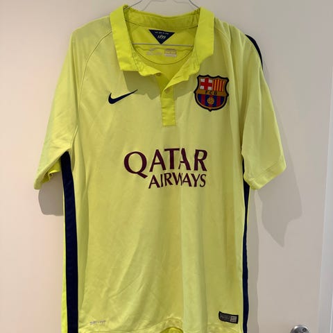 Nike Barcelona fotballdrakt i størrelse S, designet for menn. Drakten har tradisjonelle blå og røde farger og er laget med Dri-FIT materiale for å gi fukttransport og komfort under aktivitet.