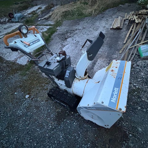 Helt ok snøfreser hvor alt virker fint men noe rust på karosseriet som det vel blir på snøfresere etter hvert.