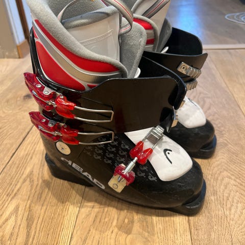 Head skistøvler i fargene hvit, svart og rød. Skistøvlene er utstyrt med spenner for god passform og støtte.