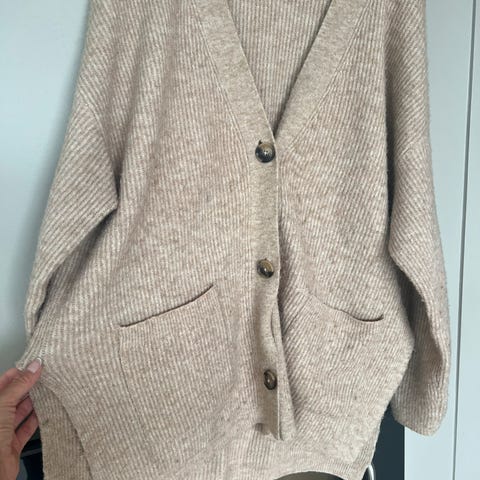 Cozy oversized cardigan med lommer. Størrelse S med veldig oversized fit. Fin til layering og lett å style. 🖤