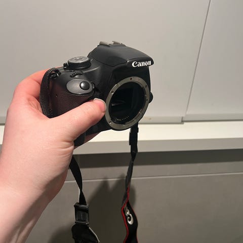 Selger et pent brukt Canon EOS 500D speilreflekskamera med Canon 18–55 mm kit-objektiv. Dette er et solid og brukervennlig kamera som passer perfekt for nybegynnere og hobbyfotografer som ønsker god bildekvalitet og manuelle innstillingsmuligheter.