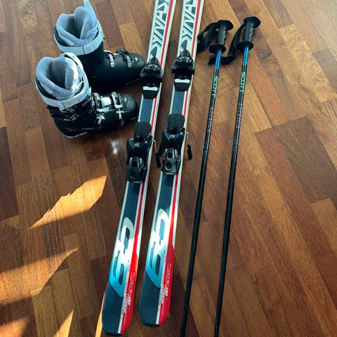 Dynastar Booster carving ski, 172 cm, med Salomon bindinger, brukt et par ganger, Nordica alpinstøvler str 45, Scott staver 130 cm