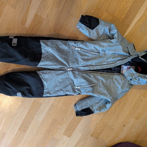 Mangler knapper for fotstropper på den ene siden. Lappet med selvklebende lapper på knærne som tålte en hel vinter i fjor.