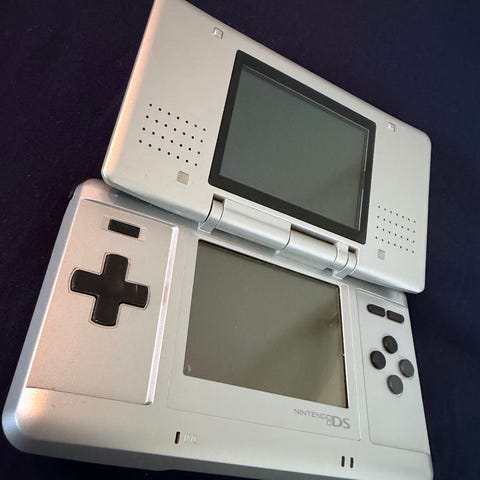 Nintendo DS spillkonsoll i mintgrønn farge. Bærbar konsoll med to skjermer, inkludert berøringsskjerm. Utstyrt med standard knapper og styrepinne for spillkontroll. Kommer med ladekabel.