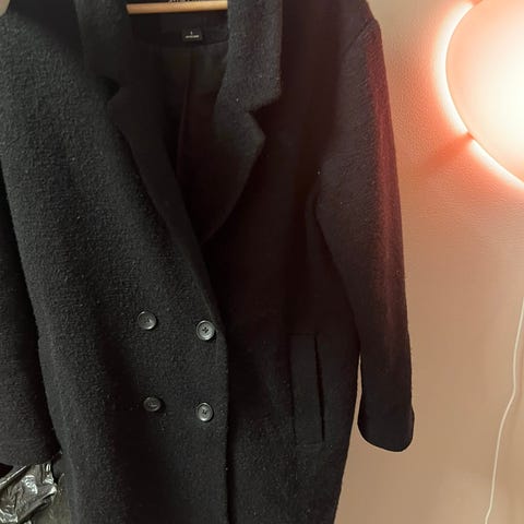 Jakken har knappelukking og lommer og kan brukes på begge sider. Den er i størrelse L men passer også til S og M.
