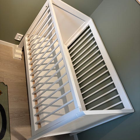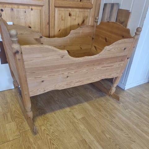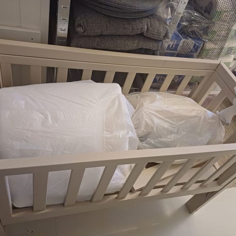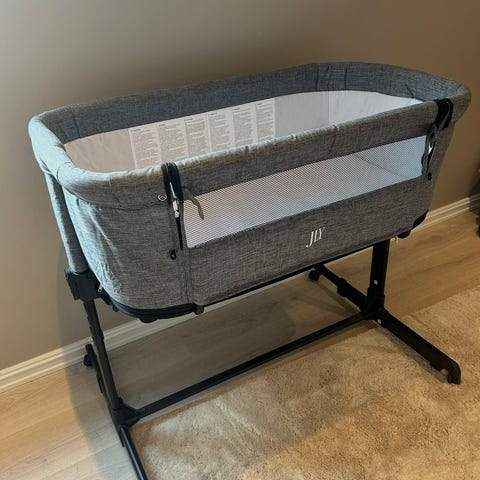 Pent brukt bedside crib som også kan senkes når barnet blir større, eller bruke det som en lekegrind. Sengen er justerbar i høyden, og man kan f.eks. kun heve hodeenden. Man kan også folde ned den ene siden som skal stå inntil din seng. Låsbare hjul.