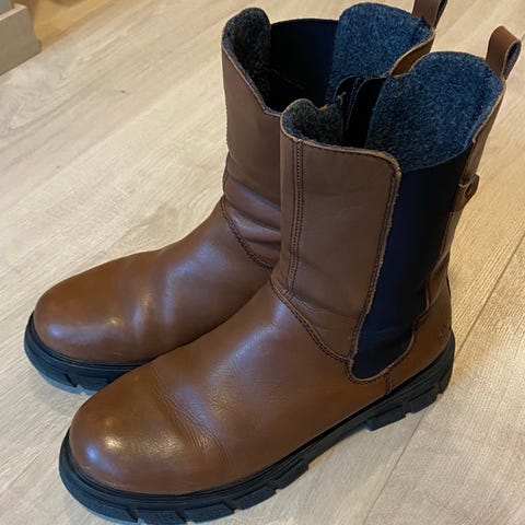 Behagelig causual comfy komfortabel kvalitet elegant stilfull rimelig mote merkeklær bærekraftig gjenbruk secondhand rieker damesko vintersko dame skinnsko ullfôret vinterstøvler brun komfort varme sko størrelse 41 ankelstøvletter høst vinter