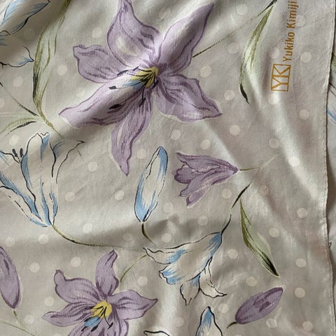 Vintage blomstrete silkeskjerf fra Hanae Mori