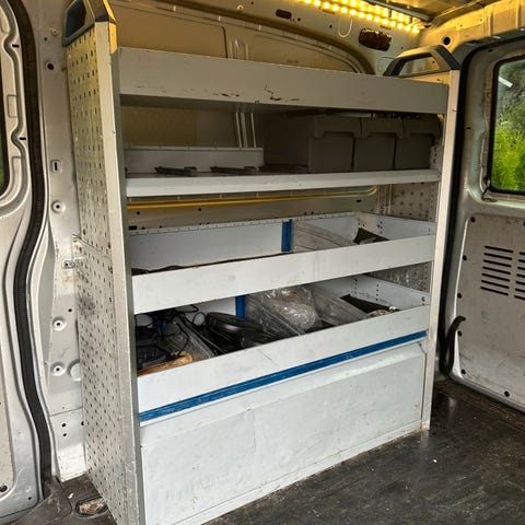 Sortimo oppbevaring med flere skuffer og åpne oppbevaringsrom. Bredde 125cm, dybde 36cm, og høyde 118cm. Egnet for organisering og oppbevaring av verktøy og utstyr.