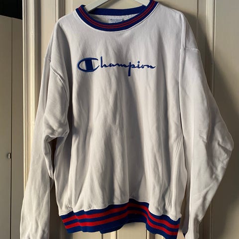 Selger en Champion genser i størrelse XL, koksgrå farge for herre. Liten logo på bryst og på arm.